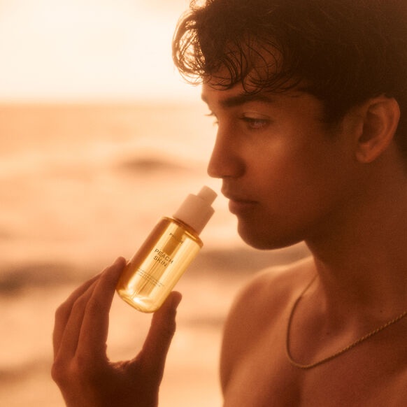 Inspired by the scent of a peach, the Peach Skin fragrance opens with notes of peach skin, plum and bellini and fades to reveal notes of coconut caramel, amber and sandalwood. As the day progresses, body heat helps to diffuse the fragrance.